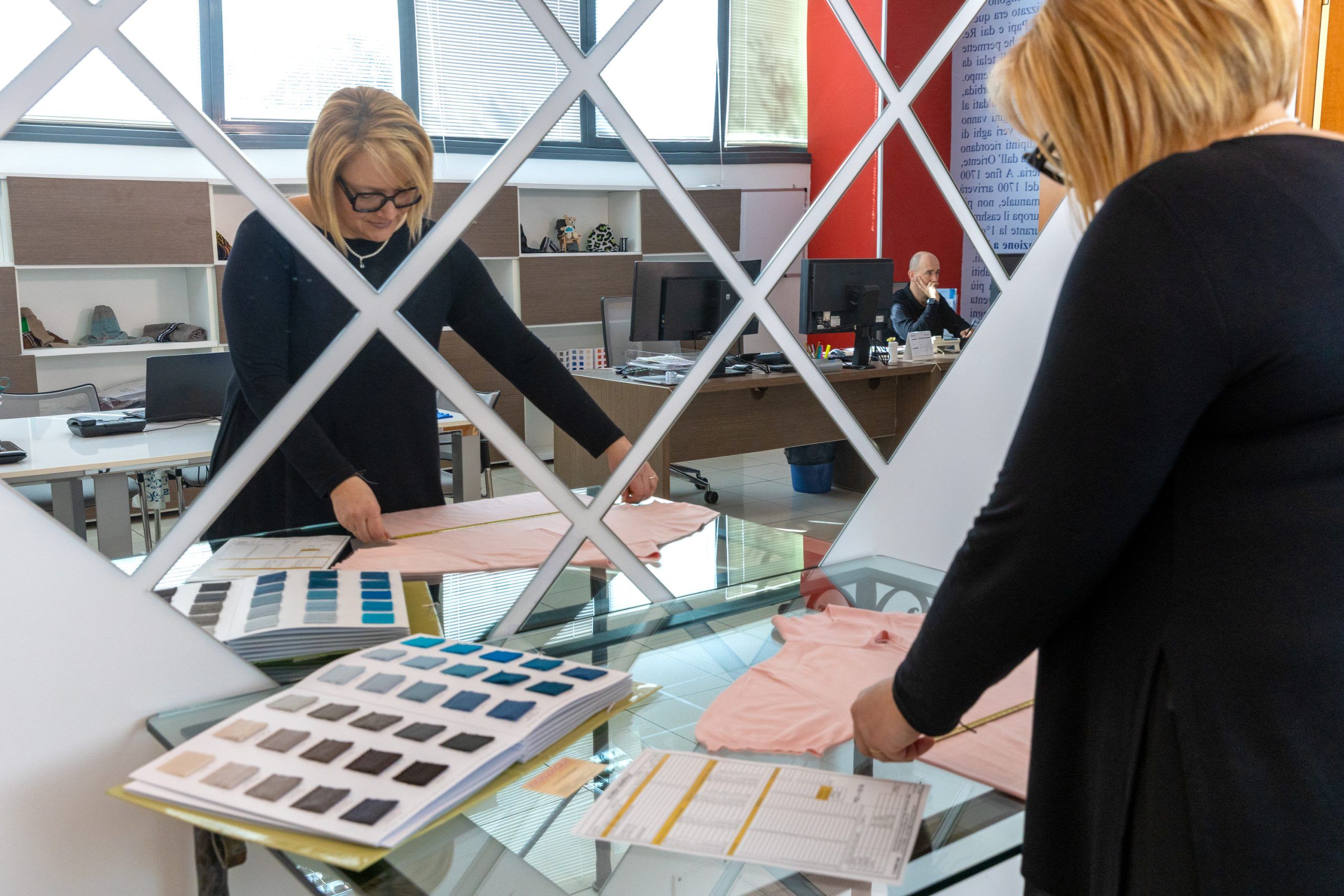 L’azienda assiste il cliente anche nella fase di progettazione, dalla selezione dei filati, dei colori, alla vestibilità, alla messa in carta del bozzetto.